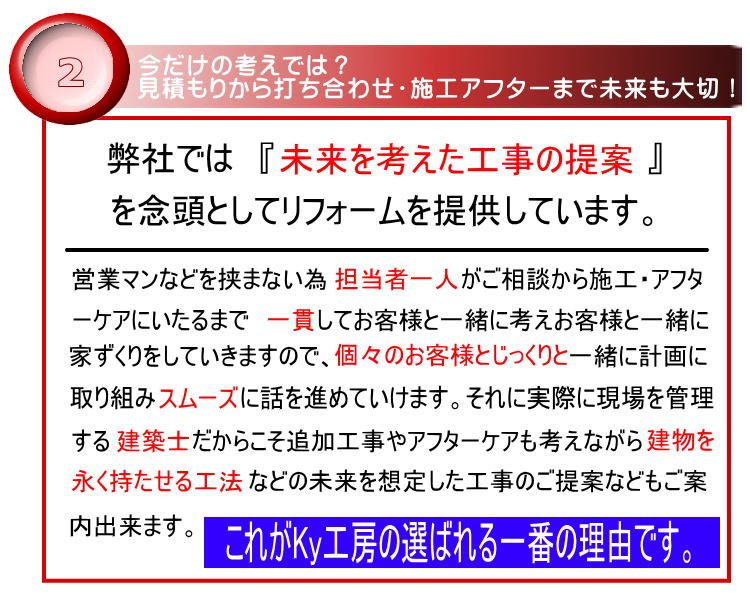 ンの提案から施工・アフターまで一貫してお客様ひとり一人にご対